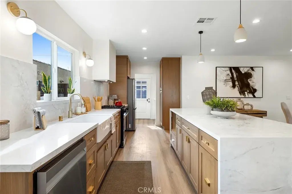 Reimagined one of kind masterpiece in the Morning side/Inglewood area. This 3 bedroom, 2 bath home is nestled in a quiet and peaceful block which gives you joy when sitting in the front porch on a Sunday morning while enjoying a cup of latte. Conscious of the backstory behind this home, sellers decided to go beyond their budget to ensure that this home is restored to new condition. This project has been remodeled with all permits pulled and up to par with LA city building codes. Upgrades include new electrical rewiring, New plumbing, new roof, irrigation system, smooth exterior stucco, Central AC/heating, drought resistant landscaping and much more. Walk into a spacious open floor concept with a modern interior design and custom finishes. The kitchen offers a good size chef's dream with a waterfall island decor to host guests for dinner nights. Putting aside all the beautiful features this estate has to offer, 77th is located in a desirable location. 77th St sits only 1 block away from Crenshaw Blvd where there is currently a massive redevelopment project in process. Other near businesses and retailers include SOFI stadium (2mi), Kia Forum, McDonalds, and LAX airport, Dollar Tree, and more.