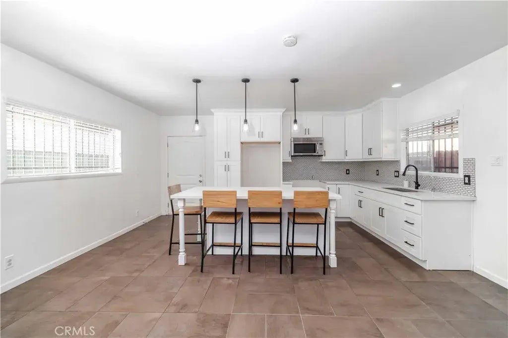 Welcome to 2432 E 112th Pl, a traditional Los Angeles bungalow that has been completely reimagined for modern comfort without losing its soul. A new roof sits overhead and new paint inside and out makes the whole home feel fresh, crisp, and move-in ready. Natural light filters through newly screened windows, bouncing off the quartz countertops and bright white shaker cabinets in the kitchen. The large island, accented with pendant lighting overhead, centers the space and invites you to gather. Its a kitchen designed for real life finished with an under-mount stainless steel sink, subway tile backsplash, and updated black hardware that brings contrast and clarity. The living room is layered with warmth and style, anchored by an accent wall and large-format tile that flows into the hallway, adding scale and style. Recessed lighting and window treatments throughout the home give every room a polished touch. Both bathrooms have been thoughtfully remodeled with the guest bath featuring an oversized stand up glass shower and new vanity. The primary suite offers a walk in closet and a spa-like ensuite with a soaking tub and dramatic floor to ceiling tile bringing a true sense of retreat to the space. A new water heater ensures energy efficiency. Each bedroom is finished with vinyl flooring and ceiling fans for year-round comfort, while outside, the decomposed granite side yard adds low-maintenance charm. The gated driveway offers covered parking for up to six cars ideal for hosting, growing households, or simply having space to spare. With close proximity to the 105 freeway and th
