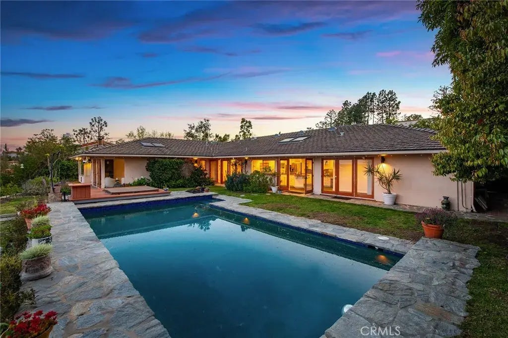 Nestled in the prestigious Bel Air-Beverly Crest neighborhood, 1420 Stradella Road is a single story residence offering breathtaking city, canyon and Stone Canyon Reservoir views. This 2,961 Square foot pool home situated on a sprawling 0.67-acre lot, features 3 bedrooms and 3 elegantly appointed bathrooms. Public records indicate 4 bedrooms but 2 of them were converted into one large primary bedroom with beamed ceilings, a stone faced fireplace and French doors that provide spectacular panoramic views. Upon entering, you're welcomed by soaring ceilings that enhance the expansive living room and formal dining area, creating an inviting atmosphere for both relaxation and entertaining. The gourmet kitchen with center island is equipped with stainless steel appliances, which seamlessly connects to an adjacent family room. It also has a wet bar. Kitchen has been thoughtfully designed to maximize the stunning unobstructed views and the vaulted ceilings and skylights make this area even more inviting. Just outside the wood-framed door in the formal dining room is a Koi pond and a thick grotto. The corner marble faced fireplace is the centerpiece of the living room. The luxurious Primary suite serves as a private retreat, complete with dual walk-in closets, a cozy sitting area or office and an ensuite bathroom that offers uninterrupted scenic vistas, a jet-tub, stand alone shower and double vanities with granite countertops. The property's exterior is equally impressive, featuring a grassy yard and a private, heated swimmer's pool and a spa, perfect for outdoor gatherings and leis