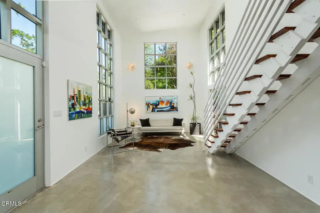 Set high above the city in the hills of Mt. Washington, this stunning architectural home offers the perfect blend of modern style and a peaceful retreat. With clean modern lines, open-concept living spaces, and floor-to-ceiling windows, natural light floods the interior while framing sweeping views. It seamlessly blends modern design with a deep reverence for the natural surroundings, creating a living experience that's both luxurious and harmonious.The home is elegantly set back from the street, creating a sense of privacy and tranquility. Surrounded by an abundant display of lush greenery, it offers a picturesque view of the sparkling city lights at night and, on clear days, the majestic mountains in the distance. With its captivating surroundings and breathtaking vistas from both sides, this location truly embodies a serene and idyllic oasis.The interior features the best of mid-century modern design with clean lines and large windows of glass that blur the line between indoors and out, creating a bright and airy living space. Soft and clean walls of white, and polished concrete floors are the perfect palette to showcase collectable pieces of art. There are two spacious bedrooms and a thoughtfully appointed bathroom. The large primary bedroom faces west and enjoys sliding doors that opens to the private front patio. The spa-inspired bathroom features beautiful white custom tile and transom windows that offer beautiful views of the greenery beyond. The sleek kitchen, offers ample cabinetry, quartz countertops, and stainless steel appliances, flows seamlessly into the dini