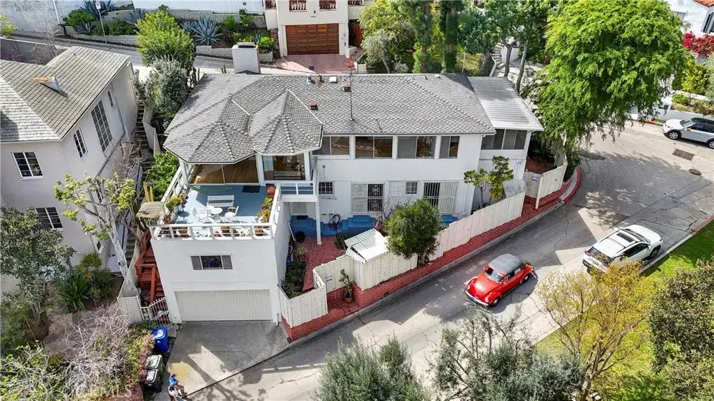 Situated on a prime corner lot in one of Los Angeles most sought-after neighborhoods, this architecturally distinctive home offers breathtaking panoramic views of the Silver Lake Reservoir and city skyline. Located just moments from the area's best dining, shopping, and recreation, this unique property blends original charm with modern updates across multiple levels of flexible living space. The main floor features two spacious bedrooms and two bathrooms, each bedroom with its own en-suite. The primary suite is generously sized and includes direct access to an enclosed patioperfect for an office, lounge, or creative spacealong with stunning reservoir views. The main living area boasts original hardwood floors, a bright open-concept layout, and a dining space that opens onto a private balcony. The updated kitchen includes granite countertops, recessed lighting, a new stove, and ample cabinetry. On the lower level, the property offers a variety of private living quarters ideal for multi-generational households or guest accommodations. This includes: A one-bedroom, one-bathroom suite with its own entrance and exit. A large bedroom with an en-suite bathroom and kitchenette. An expansive one-bedroom, one-bathroom unit featuring a full kitchen, spacious living room, oversized storage room, private patio, and separate entrance and exit. Additional highlights include a two-car attached garage, beautifully landscaped outdoor areas, and preserved architectural details that add timeless character. With its flexible floor plan, multiple private spaces, and unbeatable views, this home p