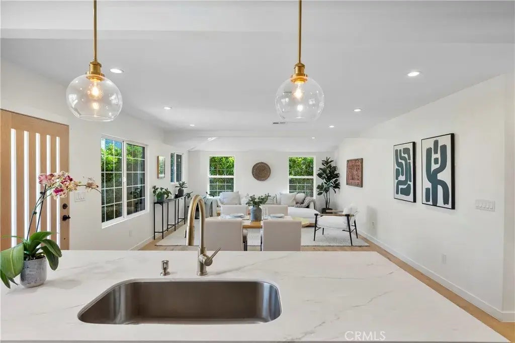This beautifully remodeled 3-bedroom, 3-bathroom home in Atwater Village combines luxury, modern convenience, and unbeatable location. Fully updated in 2024, it boasts high-end materials, a thoughtfully designed open floor plan, and two spacious primary suites on separate levels for added flexibility. Every major system has been replaced, including plumbing, electrical, HVAC, and roofing, ensuring a worry-free, move-in-ready experience. Step into the bright and airy great room with wide plank white oak floors and oversized windows that flood the space with natural light. The chefs kitchen features a 5-foot center island, leathered quartz countertops, custom oak cabinetry, stainless steel Thor appliances (including a 6-burner range), and a stunning tile backsplash extending to the ceiling. The main-level primary suite offers soaring 17-foot ceilings, direct backyard access, a luxurious ensuite bath with dual sinks, and a walk-in closet. Upstairs, the second primary suite includes mountain views, another walk-in closet, and a designer bathroom with a bold green tile motif. A third bedroom and full bath with designer finishes complete the home. The outdoor space has been fully transformed, offering a secure and private oasis. The gated front and back yards are fully landscaped with care-free turf, drought-tolerant plants, and hedges for privacy. The modern metal fence adds to the curb appeal, and the long driveway provides parking for 34 cars behind the gate, plus a one-car garage. Located in one of Los Angeles most walkable neighborhoods, this home puts you steps away from th