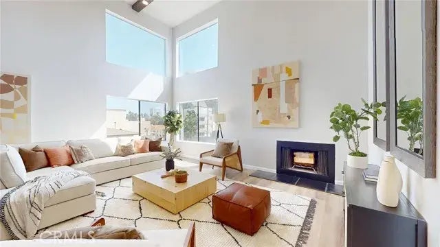 This elegant penthouse boasts a sun-drenched, expansive layout with soaring ceilings and luxurious touches. The master bathroom features sophisticated travertine floors, setting the tone for this home's refined yet welcoming atmosphere. Perfect for entertaining, the open-concept living and dining areas flow effortlessly, anchored by a wood/gas-burning fireplace that adds warmth and charm. The kitchen features Caesarstone countertops, custom cabinetry, and a cozy breakfast nook to elevate culinary experiences. Retreat to the sumptuous master suite, a true sanctuary featuring a sauna, a newly remodeled spa-like bathroom with dual vanities, and a spacious walk-in closet. The second bedroom, thoughtfully positioned for maximum privacy, is ideal for guests or family, and both bathrooms are tastefully updated with modern, elegant finishes. A striking spiral staircase leads to a versatile loft spaceperfect for a home office, art gallery, zen retreat, or personal fitness zone. Step outside to the serene rooftop to enjoy alfresco dining or savor the ocean breeze and breathtaking sunsets under the stars. This tranquil, professionally managed building offers two gated, side-by-side parking spaces, private storage, and low HOA dues, creating a seamless, hassle-free lifestyle. Centrally located between Santa Monica Boulevard and Wilshire Boulevard, this penthouse is just minutes from the best of Westside living, including Santa Monica and Venice beaches, Brentwood, and Downtown LA. With easy access to the 405 and 10 freeways, you're perfectly positioned to enjoy Brentwood and Sawtelle's