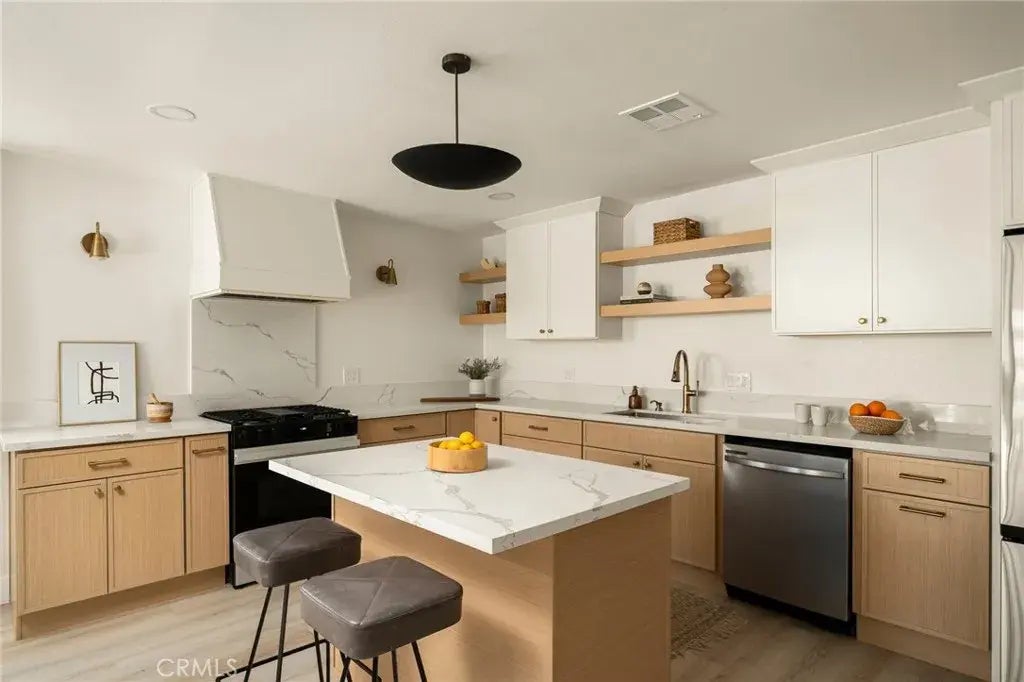 Nestled in the heart of El Sereno, this recently remodeled 4 bedroom 2 bath residence has been transformed to a tranquil and effortlessly chic abode where traversing park-like grounds provide numerous specimen plants and trees, multiple areas for relaxation and potential for an ADU. Spanning 1,618 sf of living space on an expansive 7,500 sf lot, it is zoned LARD3 and allows enough space for one's imagination. Gated and fully-fenced, vibrant bougainvillea and pomelo trees establish privacy from the street. Inside, warm neutrals create a quiet backdrop to the open concept living, dining and kitchen. For culinary enthusiasts, the kitchen is a dream! Equipped with custom cabinetry, personalized storage solutions, a tall pantry, floating shelves, and new Samsung appliances, it is ready for the best holiday soirees. Down the hall, spacious secondary bedrooms share a stylish bathroom with an oversized shower featuring white subway tiles, black hexagon floors and matte black finishes. On the opposite wing, the laundry area, a third bedroom (can be used as an office or den) and the principal suite complete the space. The primary bedroom is a serene retreat featuring a spa-like ensuite and double doors that open to a viewing deck. Outside, the newly landscaped garden is a culinary feast with mandarin orange, fig, guava, grapefruit, lemon and olive trees-a haven for pollinators to earn their keep. Other amenities include: newly painted interior and exterior, new vinyl & tile floors, recessed lighting, new roof, new central A/C and heat, 200 amp electrical panel, ABS plumbing, new back