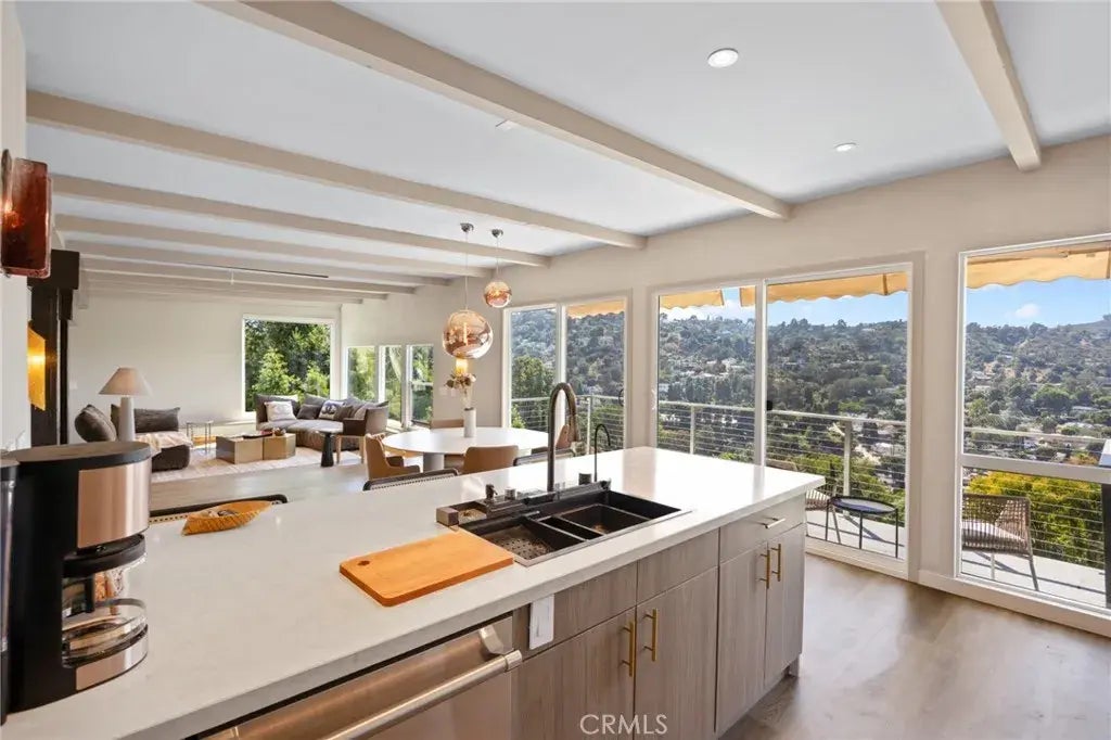 Perched in the coveted Hollywood Hills, this newly remodeled 3-bedroom, 4-bathroom residence seamlessly blends timeless mid-century modern design with contemporary luxury. Boasting over 2,100 square feet of exquisite living space, this home offers breathtaking canyon views and an elevated lifestyle. Step inside to discover a sophisticated interior featuring brand-new kitchen cabinets, Silestone countertops imported from Spain, and top-of-the-line Thermador appliancesa chefs dream. Custom designer closets, premium hardware finishes, and statement Tom Dixon light fixtures enhance the home's modern aesthetic. The spacious bonus room provides endless possibilities, whether as a media lounge, home office, or gym. Don't miss this rare opportunity to own a meticulously curated mid-century masterpiece in one of Los Angeles most sought-after neighborhoods!